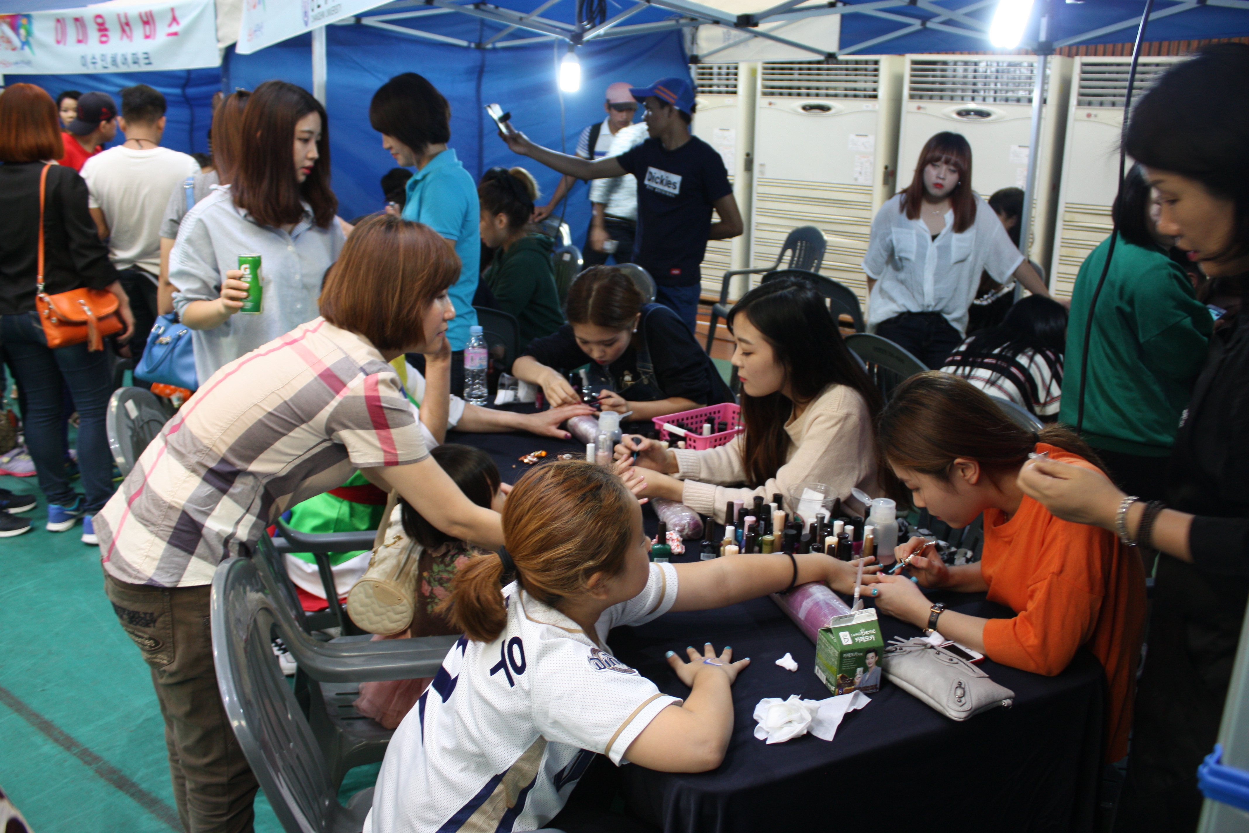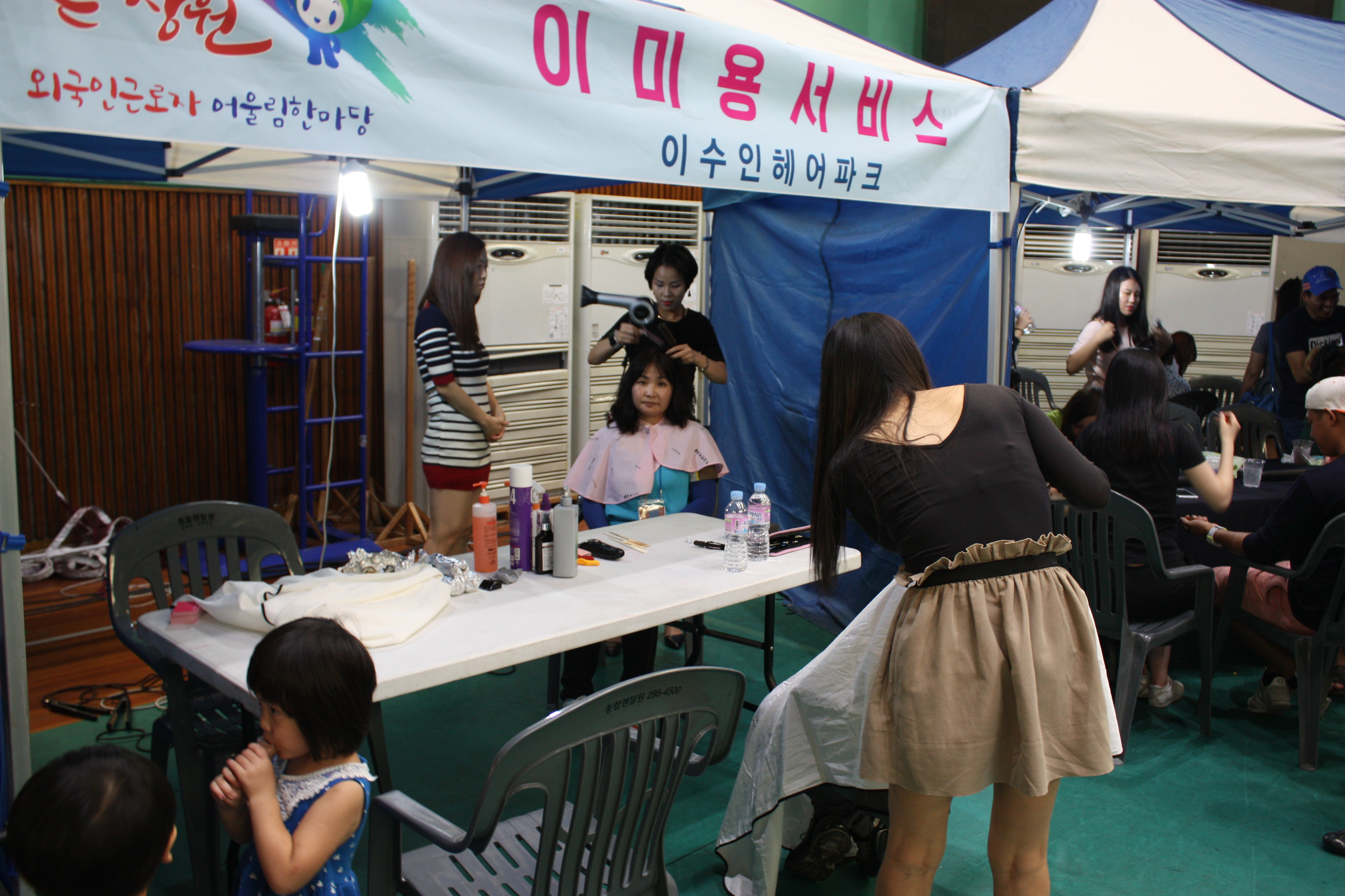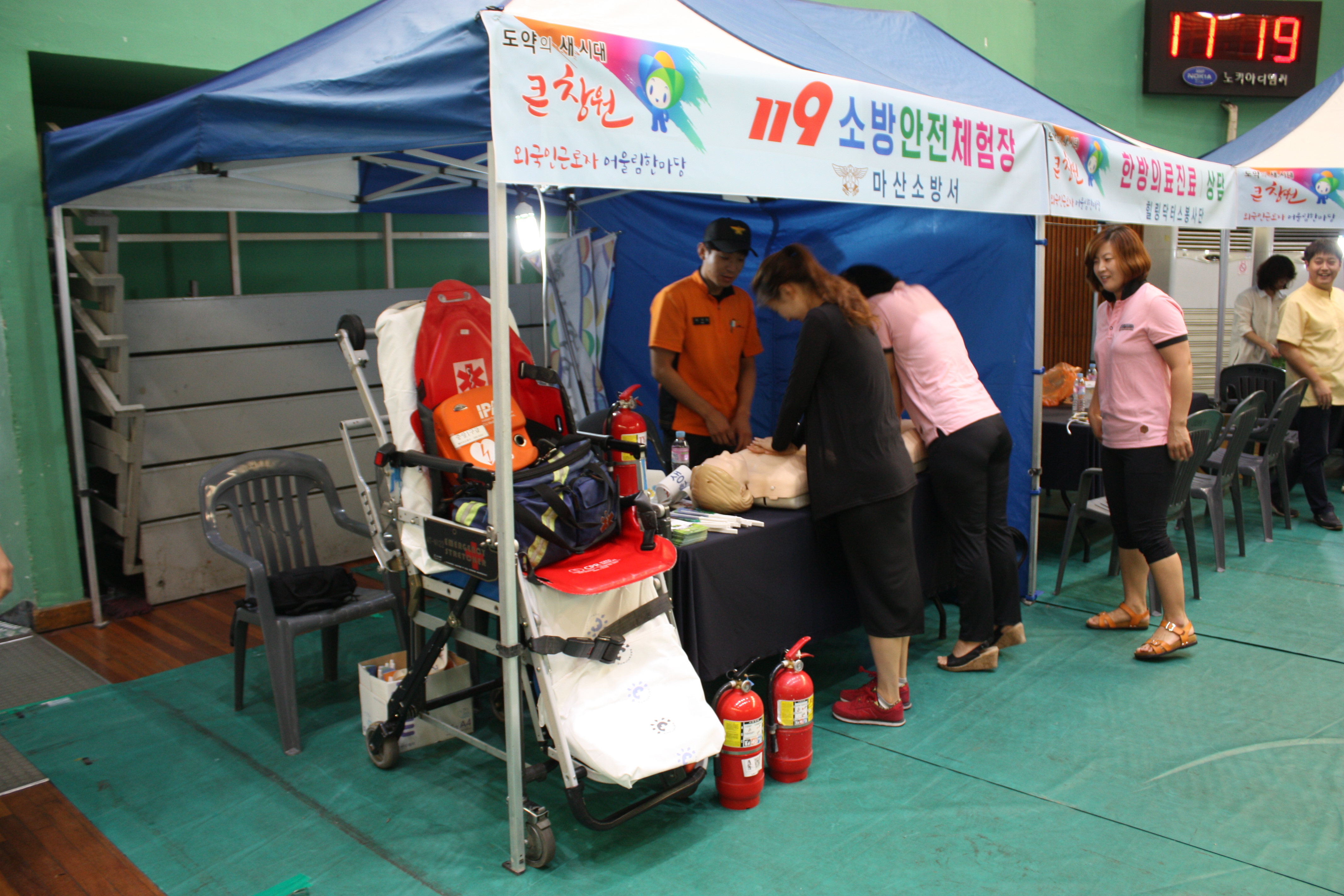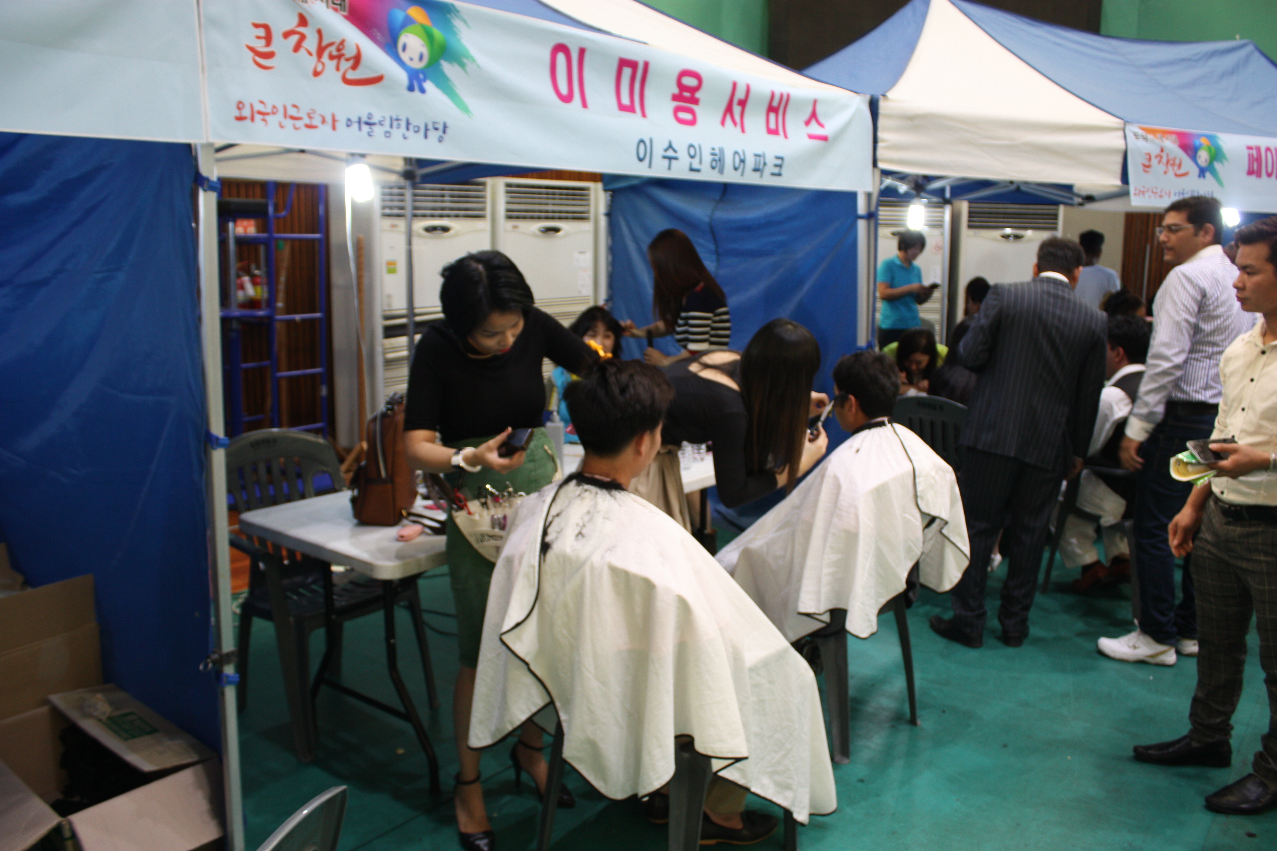 실내체육관 내부 행사 뿐만 아니라 행사 시작시간 부터 끝나는 시간까지 야외행사장에서 복리증진체험 및 홍보마당으로 고용노동부 창원고용지청, 한국산업인력공단 경남지사, 창원병원, 힐링닥터스봉사단, 경남봉사미회, 이수인헤어파크, 경남은행, 남창원농협 농산물 유통센터, 외환은행, 우리은행, 마산대학교, 창신대학교, 경남대학교, 창원대학교 등이 참여한 상담, 의료, 환전, 뷰티 등 분야별로 다양한 부스가 운영되어 여러 체험과 건강상담을 받아볼 수 있는 기회가 마련되었습니다.