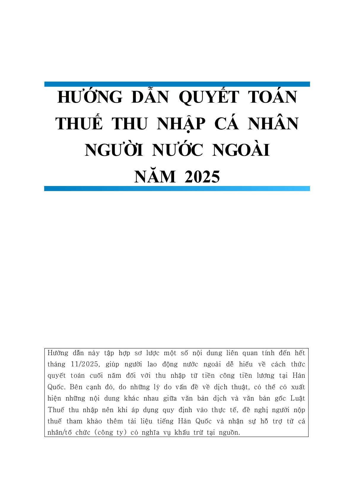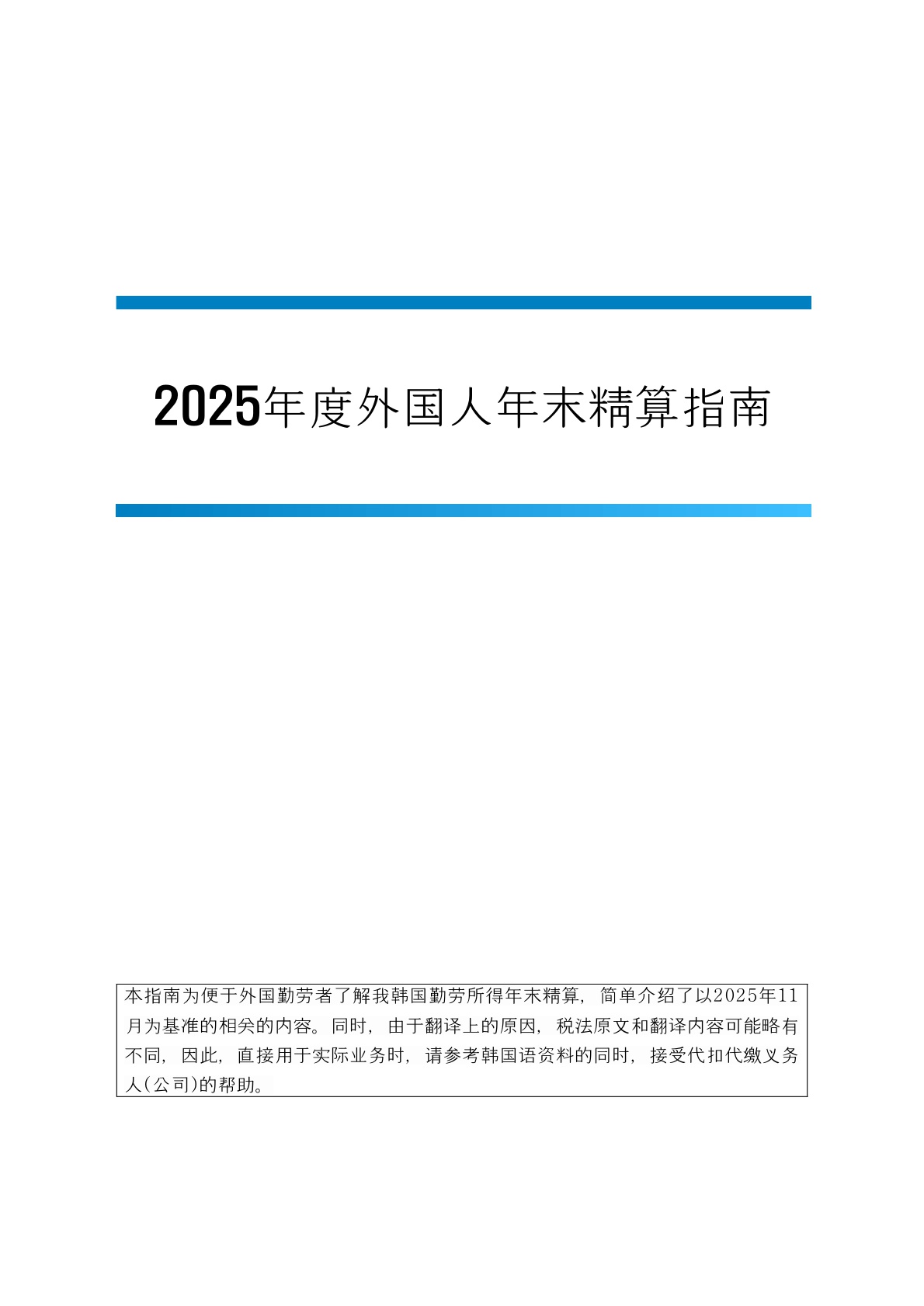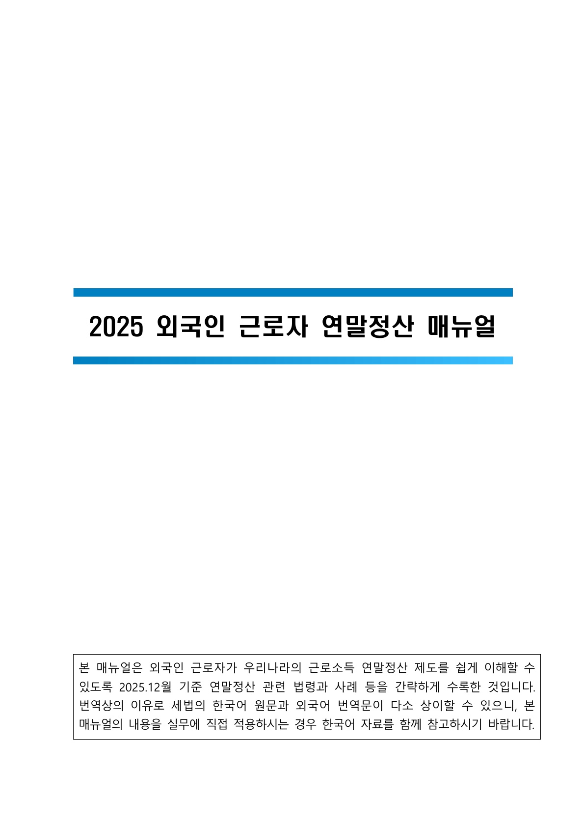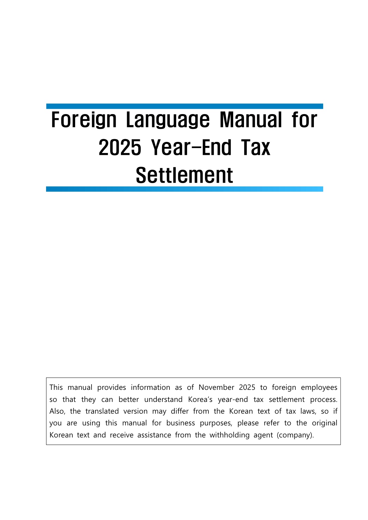'25년 귀속 연말정산과 관련하여 국내 체류 외국인을 위한 연말정산 설명서(영어,중국어,베트남어,한국어)와